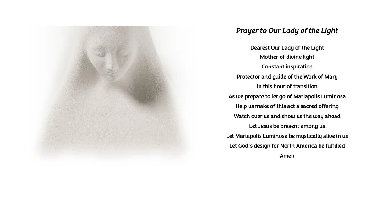 The creation of this website coincides with the beginning of a new phase in the ongoing process related to the future of Mariapolis Luminosa.